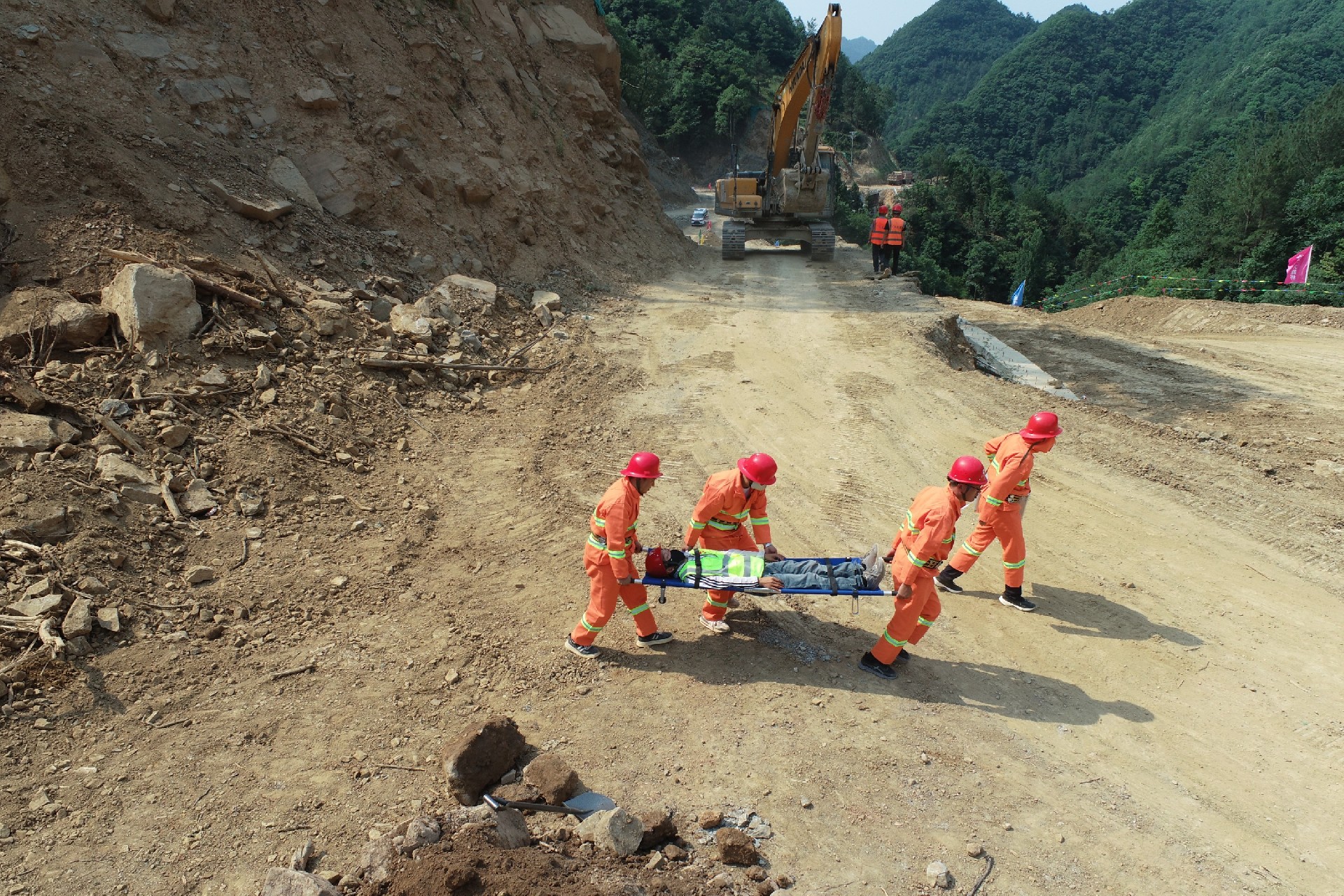 劍閣縣下寺至利州區(qū)月壩公路項目(三個石至硝洞埡段)舉行綜合應(yīng)急演練,模擬山洪引發(fā)泥石流險情處置、森林火情撲救等場景,通過無人機偵查警戒、應(yīng)急分隊施救、大型無人機空投、生命探測儀搜尋等措施,強化全員安全意識,提升自救互救技能水平。